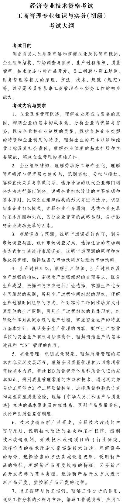 2019年經(jīng)濟(jì)師考試大綱現(xiàn)已正式公布!以下是2019年初級經(jīng)濟(jì)師《工商管理專業(yè)知識與實(shí)務(wù)》考試大綱。