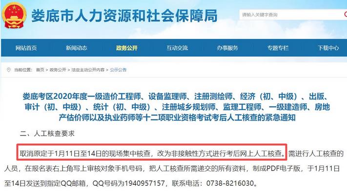 2、湖南婁底:取消原定于1月11日至14日的現(xiàn)場(chǎng)集中核查,改為非接觸性方式進(jìn)行考后網(wǎng)上人工核查