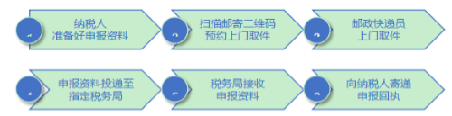 國家稅務(wù)總局遼寧省稅務(wù)局2019年度個人所得稅綜合所得年度匯算申報郵寄指南 納稅人任職受雇單位所在地(無任職受雇單位的,為戶籍所在地或經(jīng)常居住地)在遼寧。ú缓筮B市,下同)范圍內(nèi),可以通過郵寄申報辦理2019年度個人所得稅綜合所得年度申報,按照以下流程辦理申報資料上門收取、申報結(jié)果回寄。 一、需要通過郵寄申報方式辦理年度匯算的納稅人,按照《關(guān)于2019年度個人所得稅綜合所得年度匯算郵寄申報的通告》規(guī)定內(nèi)容,準(zhǔn)備好應(yīng)報送納稅申報表及其他有關(guān)資料(一式兩份)。 二、納稅人掃描遼寧個人所得稅郵寄申報二維碼,預(yù)約郵政快遞員上門收取郵寄申報資料。