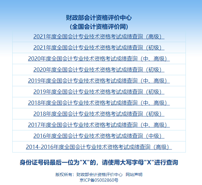 中級(jí)會(huì)計(jì)考試成績(jī)查詢網(wǎng)址