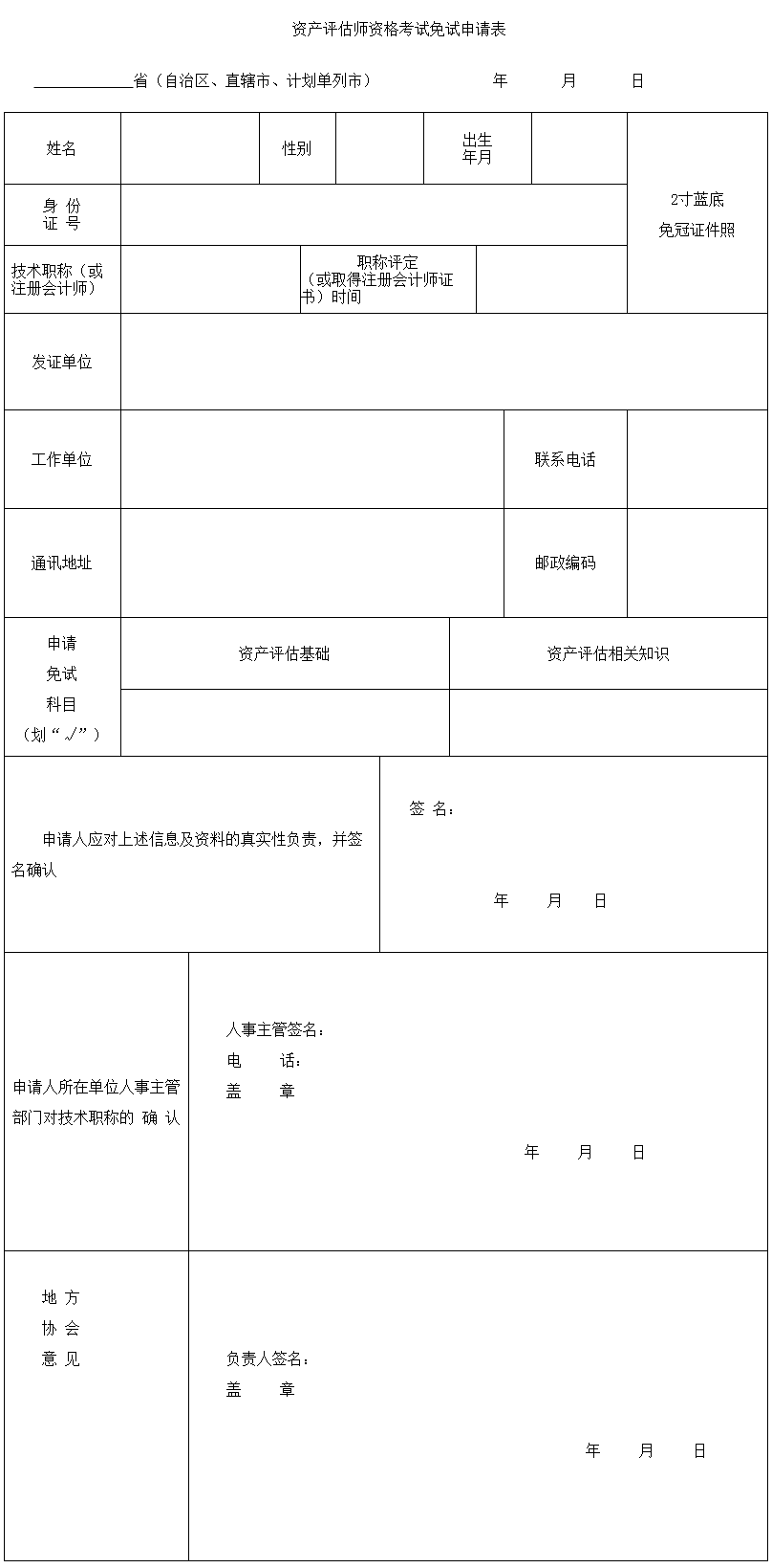 (三)資產(chǎn)評估師資格考試免試申請表(見附表2);