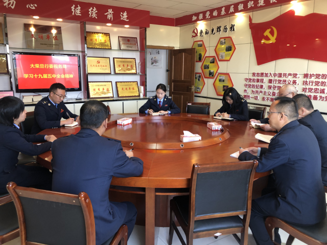 圖為:海西州大柴旦行委稅務(wù)組織干部學(xué)習(xí)五中全會精神(拍攝者:李玉倩)