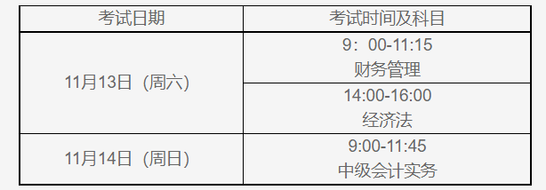 中級(jí)會(huì)計(jì)資格考試于2021年11月13日至14日舉行,各科目具體考試時(shí)間如下: