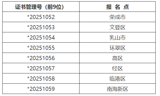 證書管理號與報名點對照表
