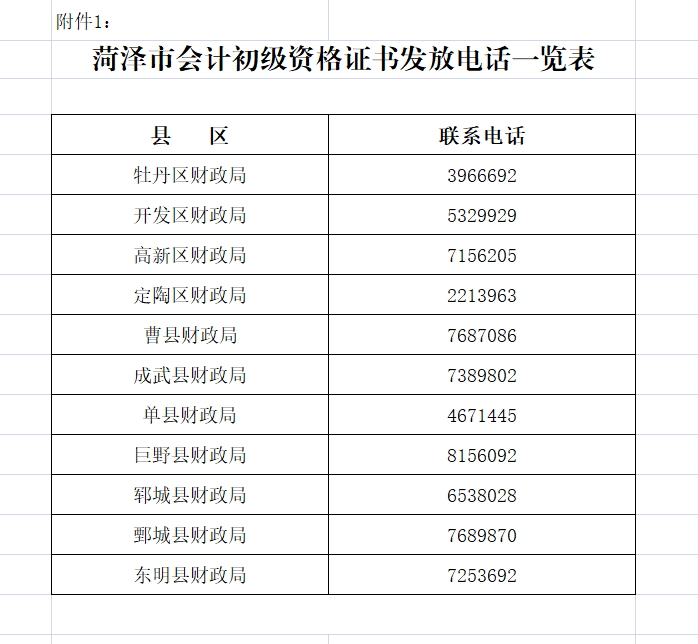 附件: 附件1:菏澤市會(huì)計(jì)初級(jí)資格證書領(lǐng)取地點(diǎn)一覽表