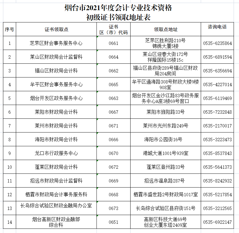 附件: 1.煙臺市會計初、中級證書領取地點統(tǒng)計表
