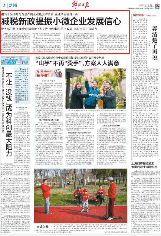 國(guó)家稅務(wù)總局上海市稅務(wù)局有關(guān)負(fù)責(zé)人表示,稅務(wù)部門將加強(qiáng)精細(xì)管理和分類支持,持續(xù)精準(zhǔn)落實(shí)小微企業(yè)減稅降費(fèi)政策,提振市場(chǎng)主體活力。