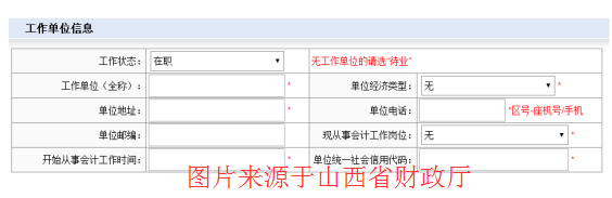 工作狀態(tài)分為在職、在讀和待業(yè),填寫(xiě)在職和在讀時(shí),帶“*”項(xiàng)目必須填寫(xiě),無(wú)工作單位的請(qǐng)選“待業(yè)”。