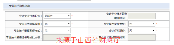 “專業(yè)技術(shù)資格級(jí)別”,選擇“無(wú)”時(shí),不需填寫(xiě)專業(yè)技術(shù)資格類型、專業(yè)技術(shù)資格取得方式、專業(yè)技術(shù)資格證書(shū)號(hào)或批文號(hào)、專業(yè)技術(shù)資格取得時(shí)間。
