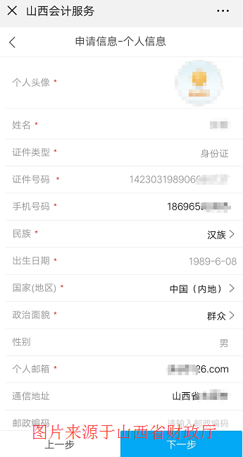 第3步:填寫(xiě)【通信地址】、【郵政編碼】、【所屬行政區(qū)劃】(所屬行政區(qū)劃以工作單位為準(zhǔn),在校學(xué)生選擇學(xué)籍地,其他人員選擇戶籍地)等內(nèi)容。