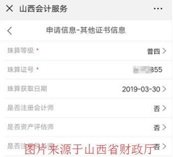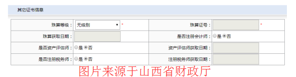 珠算等級(jí)若為“無(wú)級(jí)別”,不需填寫(xiě)珠算證號(hào),否則需要填寫(xiě)。是否注冊(cè)會(huì)計(jì)師,選擇“是”時(shí),請(qǐng)?zhí)顚?xiě)是否執(zhí)業(yè)及取得資格時(shí)間。