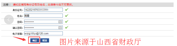 第2步:填寫(xiě)【身份證號(hào)】、【姓名】、【密碼】、【確認(rèn)密碼】、【電子郵箱】等,帶“*”的項(xiàng)目為必填項(xiàng)。