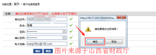 第4步:點(diǎn)擊確定后系統(tǒng)會(huì)彈出“注冊(cè)成功!”提示,表示注冊(cè)成功。