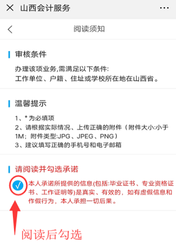 第2步:閱讀并勾選承諾;