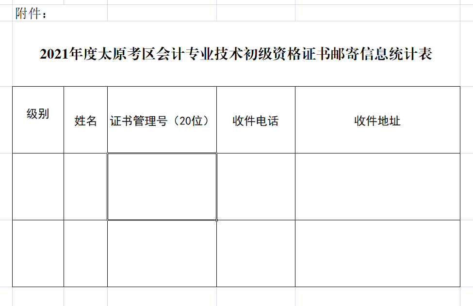 附件 2021年度太原考區(qū)會計(jì)專業(yè)技術(shù)初級資格證書郵寄信息統(tǒng)計(jì)表.xls