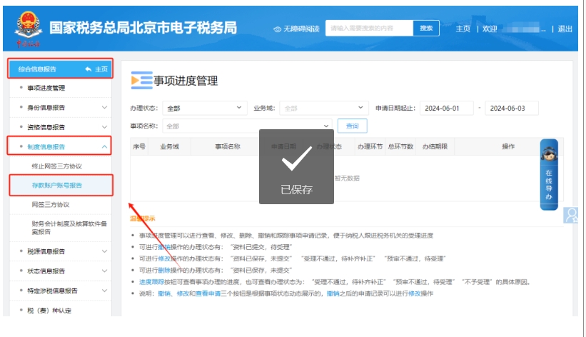 二、綜合信息報告—制度信息報告—存款賬戶賬號報告。