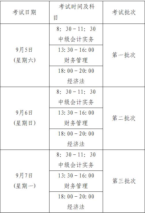 1.中級資格考試于2020年9月5日至7日舉行,共三個批次。中級資格《中級會計實務(wù)》科目考試時長為3小時,《財務(wù)管理》科目考試時長為2.5小時,《經(jīng)濟法》科目考試時長為2小時。中級資格各科目具體考試時間如下: