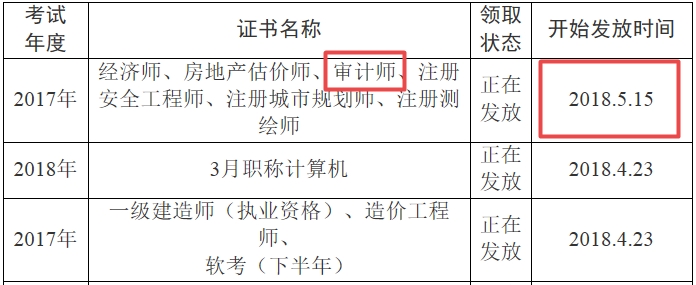四川眉山2017年初、中級審計師考試合格證書領取時間5月15日開始,審計師考試合格考生需在證書領取公告發(fā)布之日起3個月內(nèi)領取。
