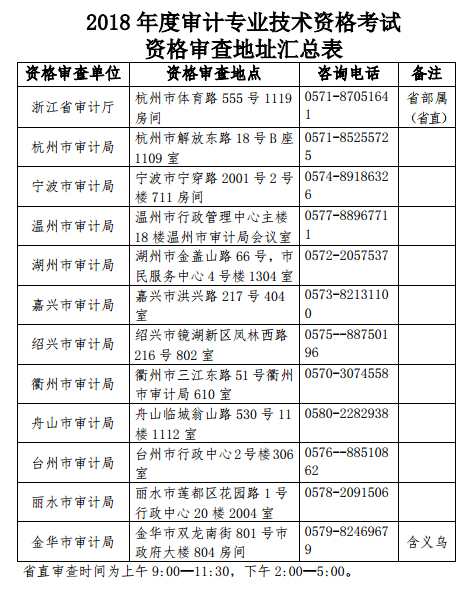(二)報考資格審查。報考人員于6月19日至21日按單位屬地原則分別到省、設(shè)區(qū)市審計(jì)部門指定的地點(diǎn)(見附件1)進(jìn)行現(xiàn)場報考資格審查(義烏考生到金華審查點(diǎn))。