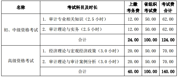 表三:山西省審計(jì)專業(yè)技術(shù)資格考試收費(fèi)標(biāo)準(zhǔn)(單位:元)