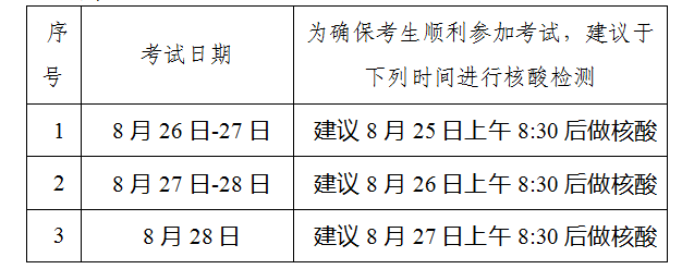 (一)請考生按要求合理安排核酸檢測時間,確?荚嚾雸銮安樵兊綑z測結果,以免影響參加考試。