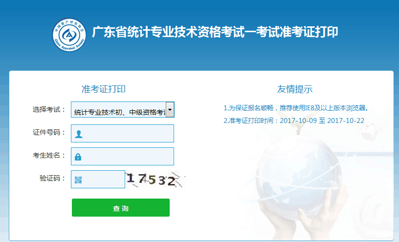 2017年廣東統(tǒng)計師考試準考證打印入口已開通,報名的考生點擊下圖進行準考證打印。