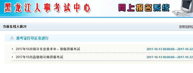 2017年黑龍江統(tǒng)計(jì)師考試準(zhǔn)考證打印入口已開通,考生可點(diǎn)擊下圖打印統(tǒng)計(jì)師準(zhǔn)考證。準(zhǔn)考證打印時(shí)間為2017年10月13日至10月22日。