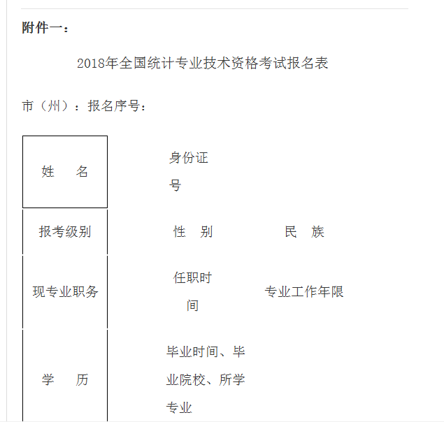 附件:1.2018年全國(guó)統(tǒng)計(jì)專業(yè)技術(shù)資格考試報(bào)名表