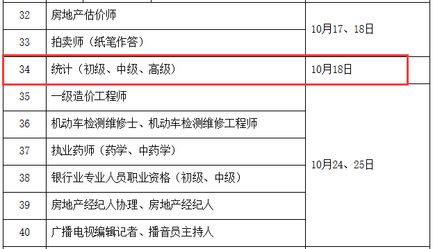 根據(jù)《2020年度專業(yè)技術(shù)人員職業(yè)資格考試工作計劃》可知,2020年統(tǒng)計師考試時間為10月18日。