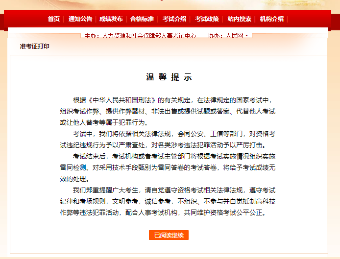 3、閱讀溫馨提示,點(diǎn)擊“已閱讀繼續(xù)”。