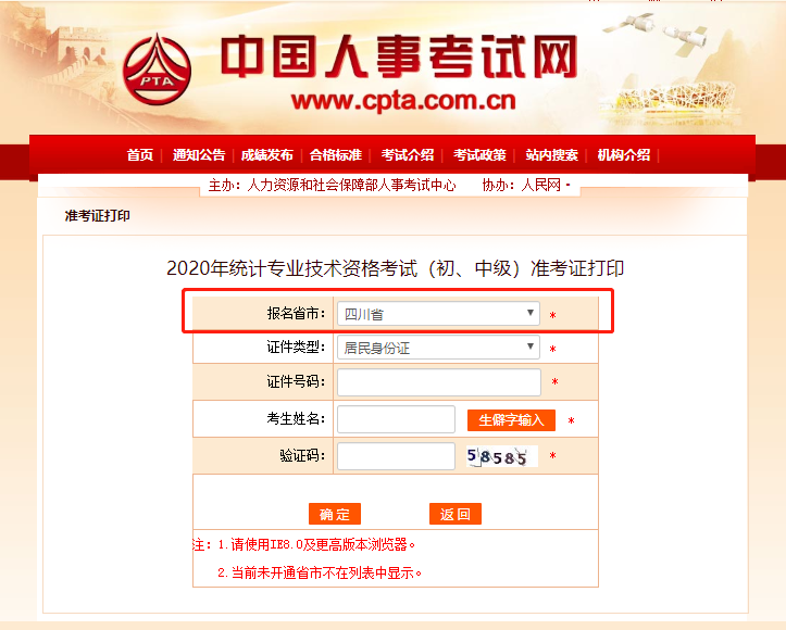 2020年四川統(tǒng)計(jì)師考試準(zhǔn)考證打印入口