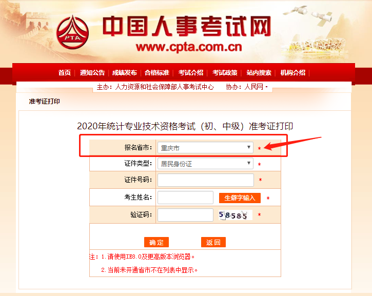 2020年重慶統(tǒng)計(jì)師準(zhǔn)考證打印流程: