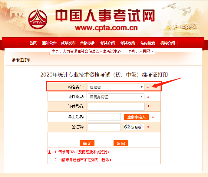 中國人事考試網(wǎng)開通了2020年福建統(tǒng)計師準考證打印入口,報名福建統(tǒng)計師考試的考生可輸入證件號、姓名看是否可以打印,如輸入后提示尚未開通,請考生按原定時間再進行打印。(根據(jù)2020年福建統(tǒng)計師報名公告,福建統(tǒng)計師準考證打印時間10月14日9:00-10月17日17:00)