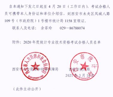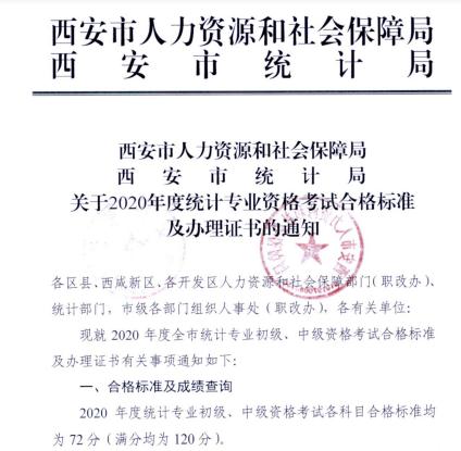 西安市人力資源和社會保障局、西安市統(tǒng)計局關(guān)于2020年度統(tǒng)計專業(yè)資格考試合格標(biāo)準(zhǔn)及辦理證書的通知