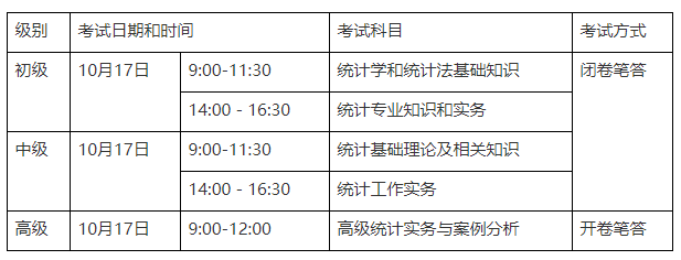 2021年度統(tǒng)計專業(yè)技術資格考試具體考試時間及科目如下:
