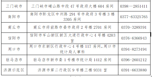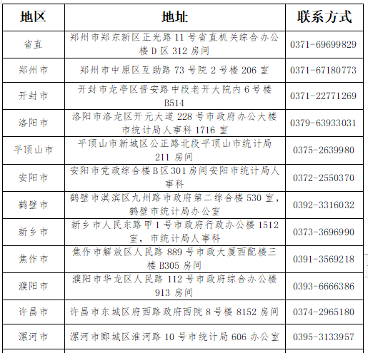 各省轄市、濟(jì)源示范區(qū)統(tǒng)計(jì)部門地址及聯(lián)系方式