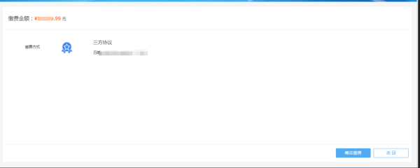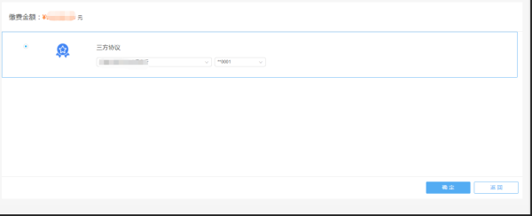 4.用戶需選擇相應(yīng)的三方協(xié)議賬號并點(diǎn)擊確定,再次確認(rèn)繳費(fèi)金額和協(xié)議賬號后,點(diǎn)擊【確認(rèn)繳費(fèi)】按鈕,繳費(fèi)成功