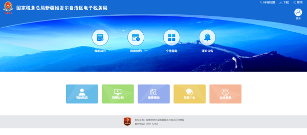 http://etax.xinjiang.chinatax.gov.cn/wszx-web/bszm/apps/views/beforeLogin/indexBefore/pageIndex.html出現(xiàn)以下界面,