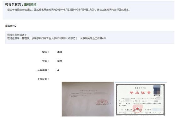 預(yù)報名階段,參考人員上傳畢業(yè)證書和工作年限證明進行審核,若審核通過則如下圖所示(預(yù)報名審核通過才能正式報名喲~):