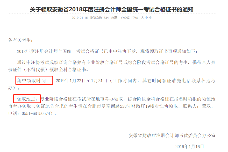 2018年安徽合肥注會合格證領(lǐng)取通知