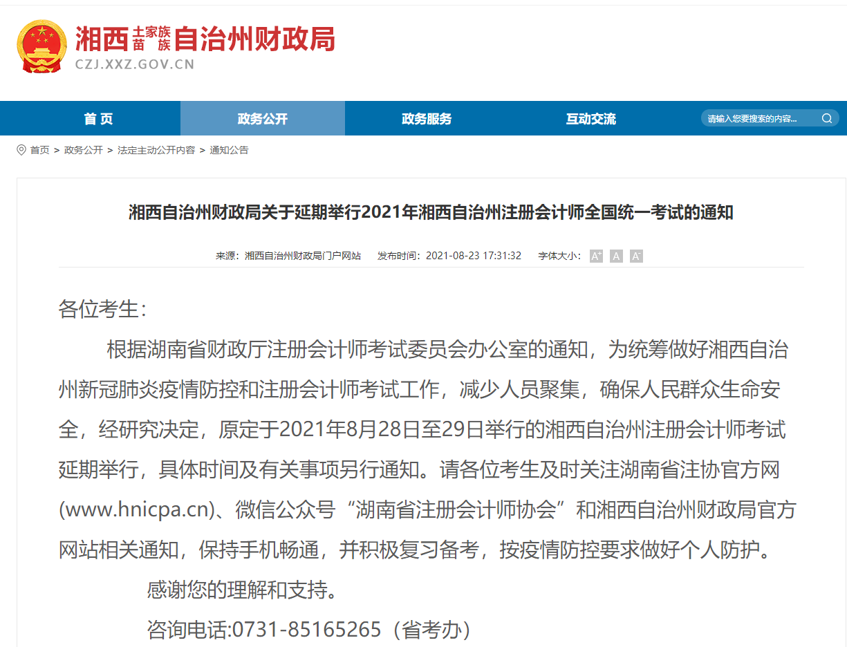 延期舉行通知詳情點(diǎn)擊《關(guān)于延期舉行2021年湘西自治州注冊(cè)會(huì)計(jì)師考試的通知》。