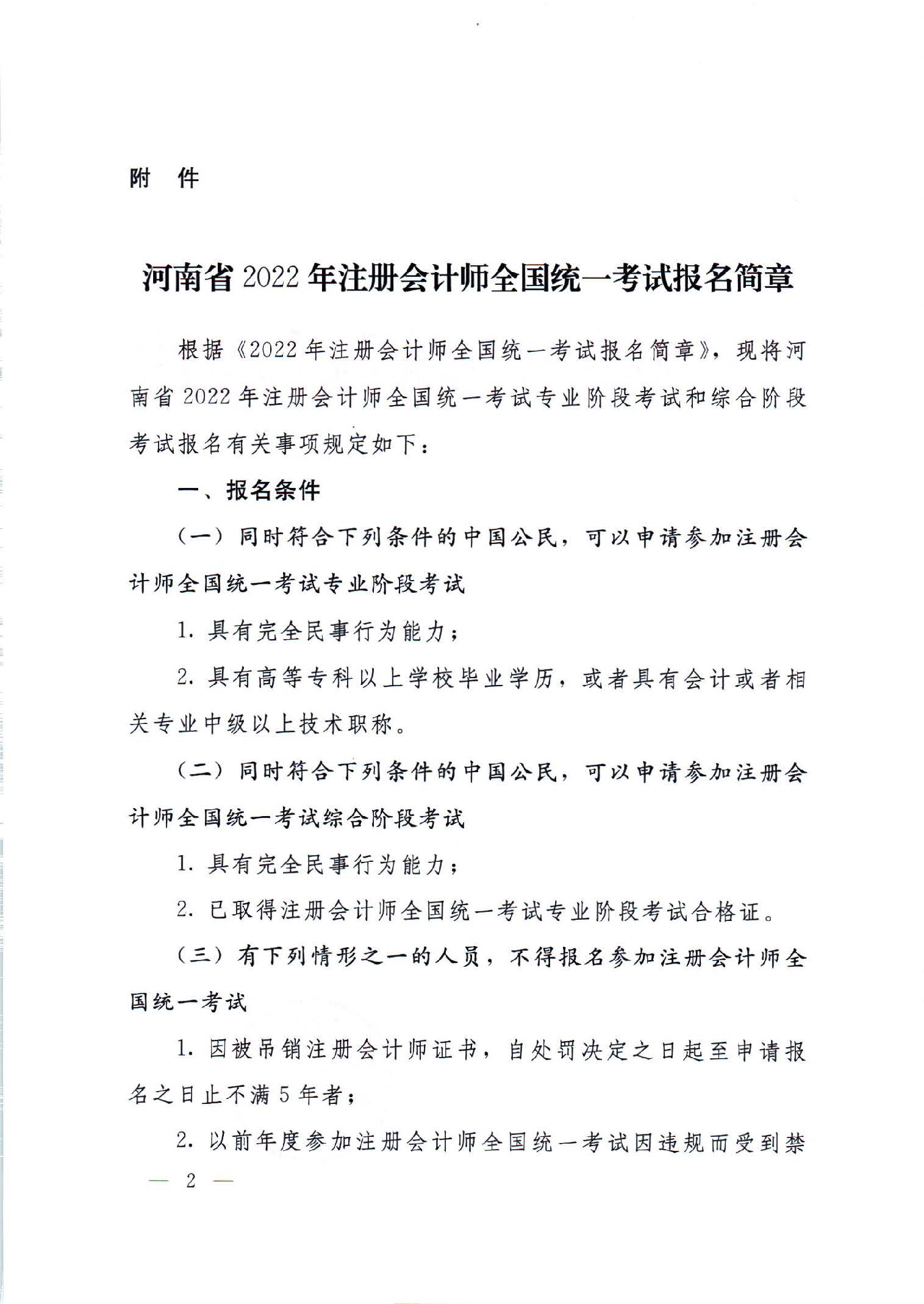 附件:河南省2022年注冊會計師全國統(tǒng)一考試報名簡章