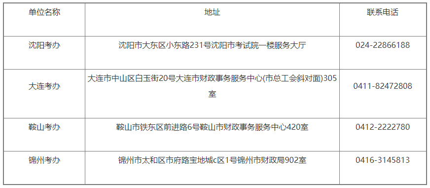 專業(yè)階段考試設(shè)置沈陽、大連、鞍山和錦州4個(gè)考區(qū),考試地點(diǎn)相應(yīng)安排在沈陽市、大連市、鞍山市和錦州市。