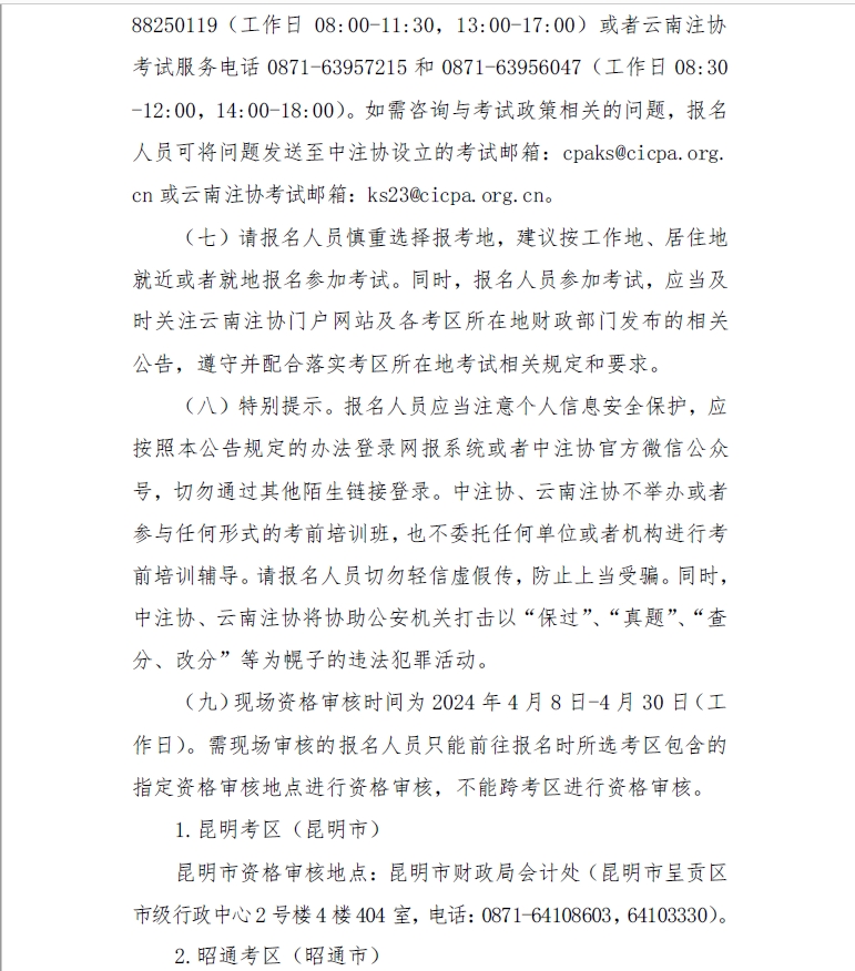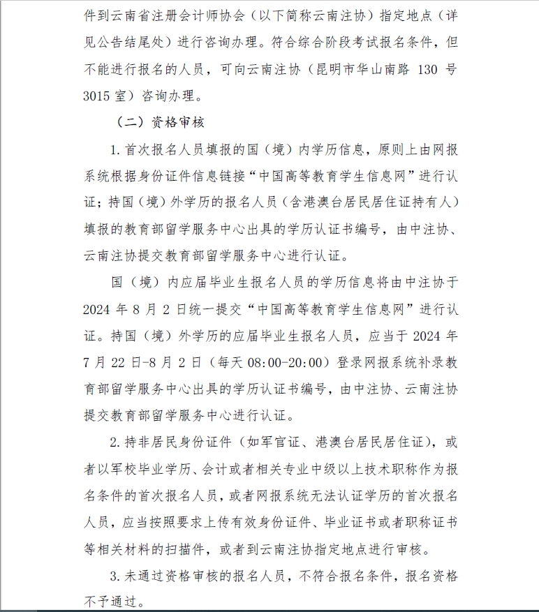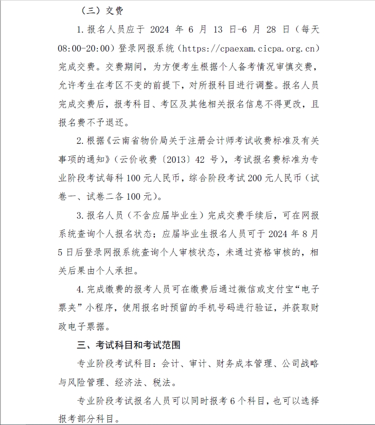 云南2024年注會(huì)考試報(bào)名時(shí)間已公布,具體報(bào)名時(shí)間4月8日-4月30日,報(bào)名入口網(wǎng)址:https://cpaexam.cicpa.org.cn。交費(fèi)時(shí)間:2024年6月13日-6月28日(每天8:00-20:00),報(bào)名分為注冊(cè)并填寫報(bào)名信息、資格審核和交費(fèi)三個(gè)環(huán)節(jié)。2024年云南CPA報(bào)名簡章全文如下: