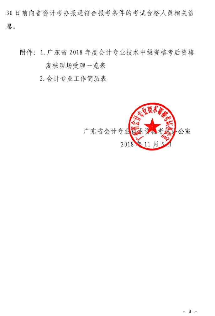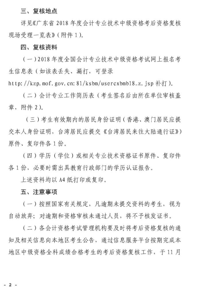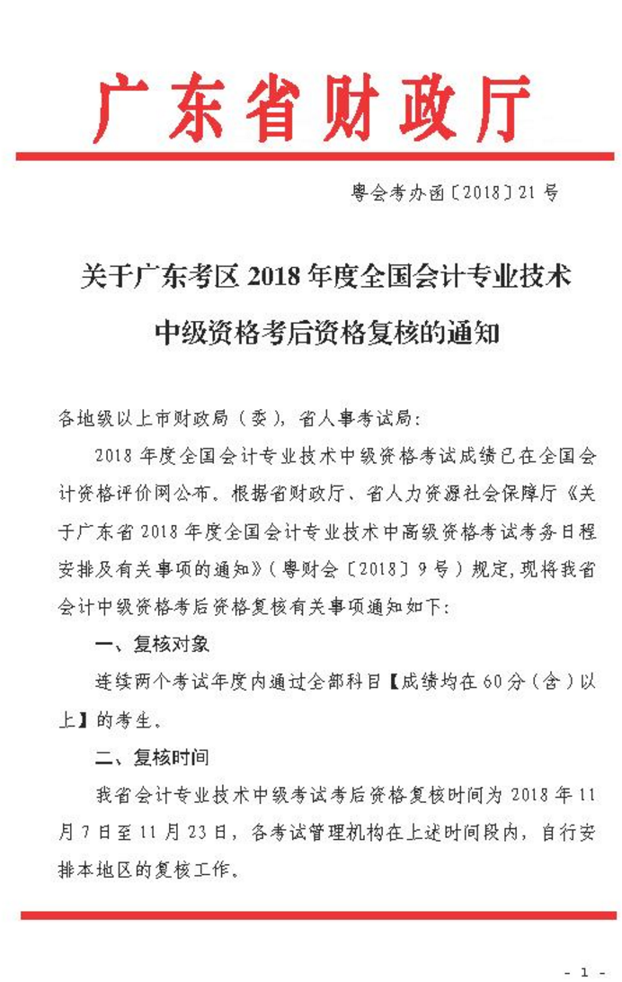 關(guān)于廣東考區(qū)2018年度全國會計(jì)專業(yè)技術(shù)中級資格考后資格復(fù)核的通知