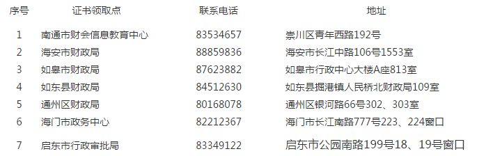 各縣(市)和通州區(qū)成績(jī)合格的考生,到當(dāng)?shù)刎?cái)政局指定地點(diǎn)(詳見附件)領(lǐng)取資格證書。具體事項(xiàng)以所在地財(cái)政局通知為準(zhǔn)。