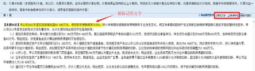 2) 用鼠標(biāo)在資料區(qū)選中文字(包括數(shù)字、符號、算式、會計(jì)分錄等,下同)后,再用鼠標(biāo)點(diǎn)擊“標(biāo)記文字”按鈕(下圖紅框處)對選中部分的文字加上高亮標(biāo)記,可以將試題中重要的信息突出顯示,方便查看。對試題文字所作的標(biāo)記,不會作為考生答案的一部分,也不會影響考生的成績評判。用鼠標(biāo)在資料區(qū)選中一段已標(biāo)記的文字后,再用鼠標(biāo)點(diǎn)擊“取消標(biāo)記”按鈕(下圖紅框處)可以清除選中部分文字的高亮標(biāo)記。