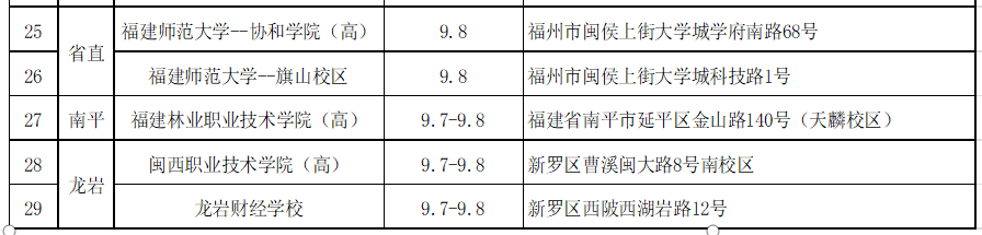 三、福建考區(qū)考點(diǎn)分布情況