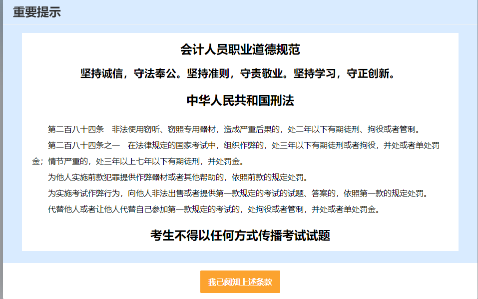 第十一條 考試期間,考生應按照考試系統(tǒng)要求進行操作,由于進行與考試無關的操作所造成的一切后果,由考生本人負責。