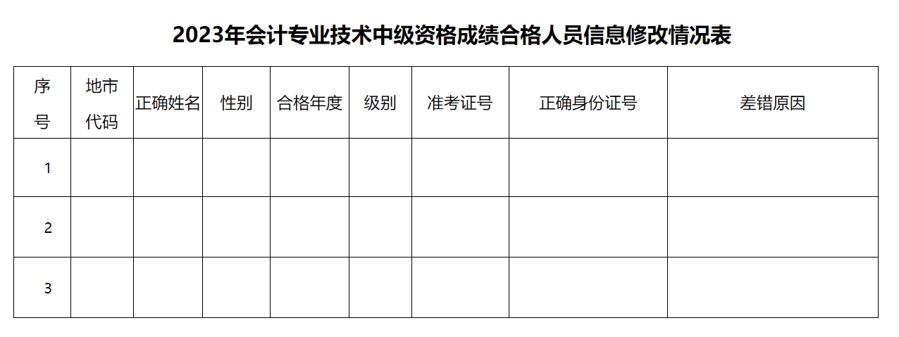 附件:2023年度會(huì)計(jì)專業(yè)技術(shù)中級(jí)資格成績(jī)合格人員信息修改情況表